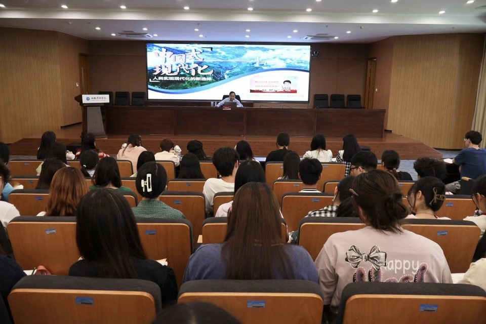 课堂上,邸书记以“读懂中国式现代化”为题,运用详实的数据和耳熟能详的案例,从“展现新图景,创造新形态”“拥抱新机遇,无畏新挑战”“锚定新目标,铸就新伟业”三个方面系统阐述中国式现代化,带领学生们共同领略中国式现代化的万千气象,引导学生坚定理想信念,奋发进取向上,努力成为中国式现代化建设的主力军。