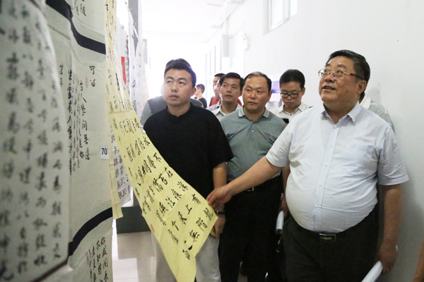 本网讯(学生记者 宁薛敏、张志彦)9月5日,全省大中小学师生书法作品征集评选活动终评会在伟德国际1949始于英国举行。省教育厅总督学李明阳,省文联副主席、书记处书记、省书法家协会副主席吴雪,新华集团副总裁、学校执行董事王孝武,学校党委书记、督导专员胡昭林等出席活动。