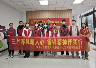 本网讯 (通讯员:崔妹 李彤)3月5日雷锋日,大数据与人工智能学院党总支学生党员前往玉兰社区开展“三月春风暖人心,雷锋精神伴我行”志愿服务活动,践行和弘扬楷模精神,掀起学雷锋活动热潮。