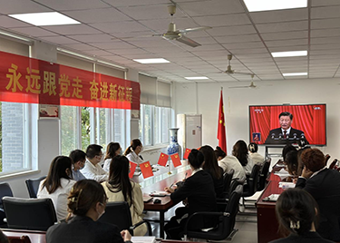 本网讯(通讯员:崔妹)中国共产党第二十次全国代表大会于2022年10月16日上午十点在北京隆重开幕。当日上午,大数据与人工智能学院党总支书记郑妮,副书记魏高莉、纪检委员万家华,各支部书记以及在校教师党员代表和全体学生代表分别在教13(205)和教13(203)会议室集中观看学习党的二十大报告。