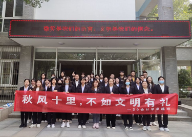 本网讯(通讯员:许华娟)为了弘扬文明之风,践行文明行为,提高文明素养,增强社会责任感,营造校园文明氛围,构建文明社会。财会与金融学院开展了“秋风十里,不如文明有礼”文明建设月活动。