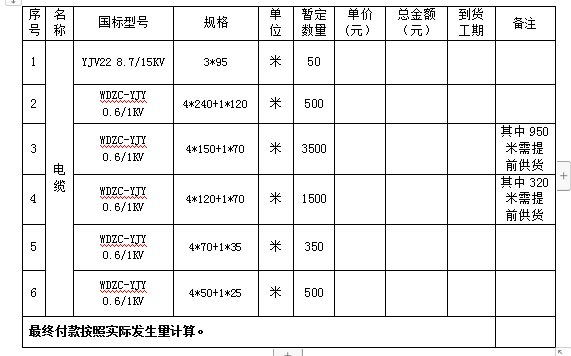 投标方应将电子投标文件、电子投标书、加盖公章扫描,文件名为“电缆采购项目电子报价文件”。将电子投标资料直接送至:861230741@qq.com邮箱。