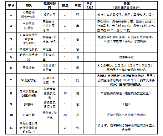 心理健康中心设备采购招标询价公告