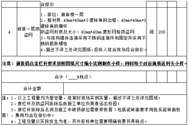 1.项目名称:宿舍楼护栏拆除及更换项目