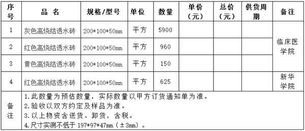 高烧结透水砖招标询价公告