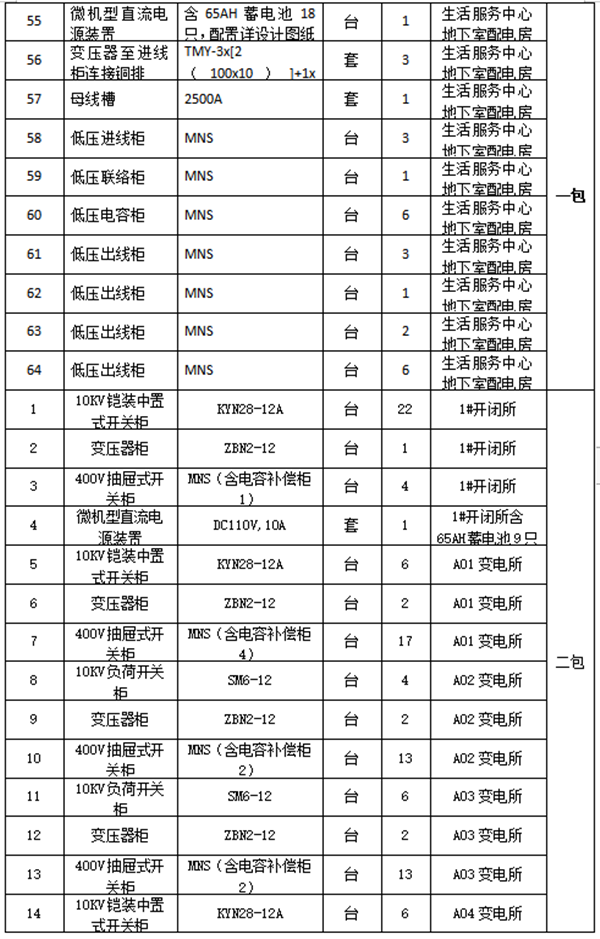 2.项目名称:配电房高低压柜项目