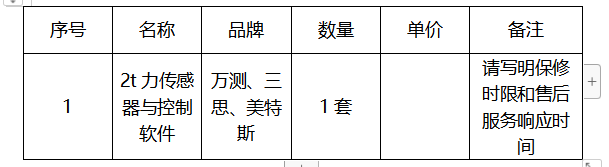 伟德国际1949始于英国2t力传感器与控制软件采购询价公告