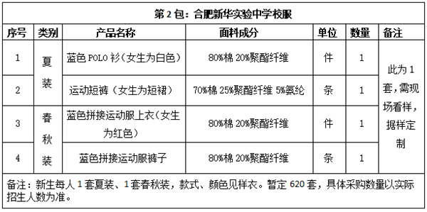 因单位需求,现对安徽新华集团旗下安徽新华学校、合肥新华实验中学2022级新生校服采购项目进行公开询价采购,欢迎全国有资质的供应商前来参与。