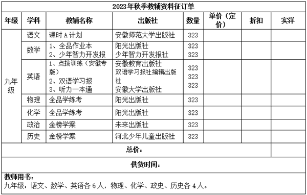 合肥新华实验中学九年级教辅项目采购询价公告