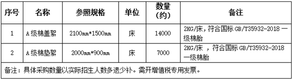 2.招标项目:2023年新生公寓物资(棉絮)采购项目