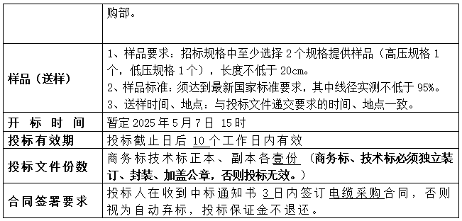 1.1样品要求:招标规格中至少选择2个规格提供样品(高压规格1个,低压规格1个),长度不低于20cm。