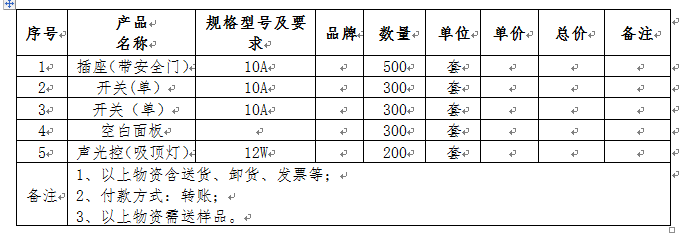 10、报价函(序号、产品名称、规格型号、品牌、单价、总价)。