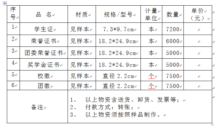 根据伟德官网工作计划,现就学生证、荣誉证书、校徽等采购项目进行公开询价,欢迎符合条件的优质供应商积极参与。