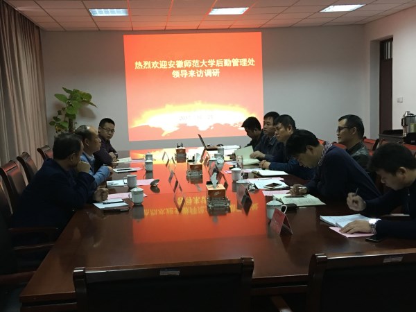 本网讯(通讯员:董梅) 10月25日下午,安徽师范大学后勤管理处副处长徐成文一行四人来访伟德官网调研学生洗浴服务进公寓等后勤管理工作,校总务处、产业处、学生处负责人及相关管理人员热情接待了来访人员,双方在行政楼第三会议室展开了研讨交流。