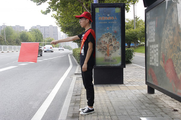 9月23日下午,志愿者们在图书馆门口整装待发,由校园交通车送往目的地。经交警的指导说明,在知悉相关重要交通安全管理条例后,志愿者们佩戴小红帽、绶带,手执小红旗在主要交通路口协助交警检查监督,按交通信号灯指挥车辆和行人停止与通行,引导车辆在停车位规范停放,耐心做好违规者的劝导、教育工作,引导广大交通参与者自觉遵守交通法规。活动历时四个小时,志愿者们认真负责的态度,以及不怕苦、不怕累的精神,得到了执勤民警的赞许。