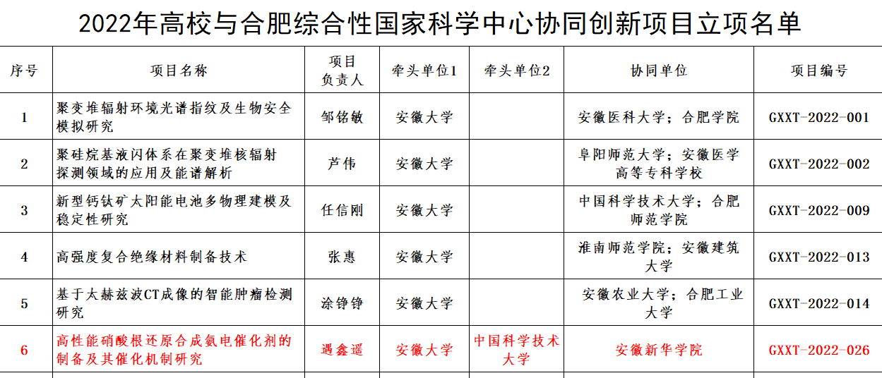 本网讯(通讯员:赵影)11月28日,安徽省教育厅发布了《安徽省教育厅关于下达2022年安徽省高校协同创新项目的通知》,伟德官网药学院赵颖博士协同申报的课题《高性能硝酸根还原合成氨电催化剂的制备及其催化机制研究》获得立项批准。该项目是由安徽大学和中国科学技术大学牵头申报,伟德官网为协同合作单位,项目实施周期为2-3年。