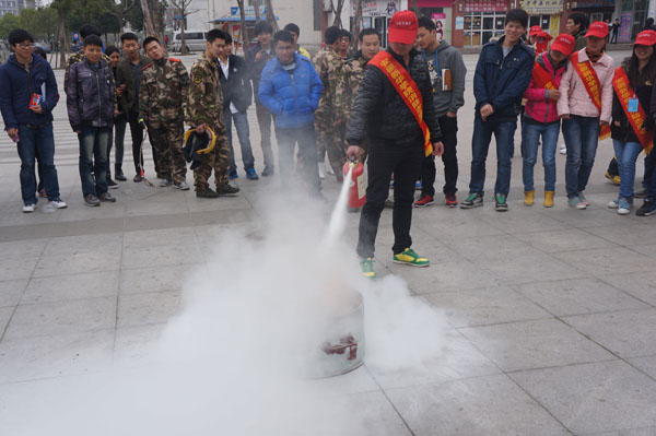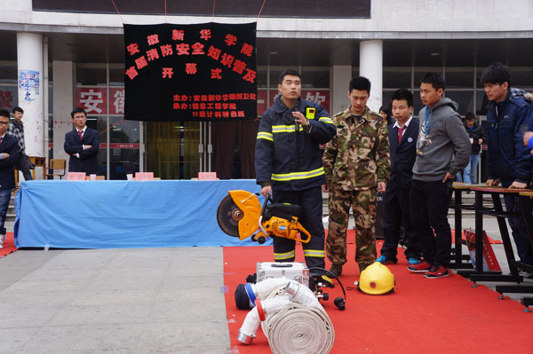 本网讯 (学生记者、康引兰,摄影 潘晓峰)3月11日中午,伟德官网首届春季安全知识普及活动的开幕式在翰林广场举行。本次活动由学校保卫处主办,特别邀请了合肥市高新区公安消防大队来校做示范宣传,伟德官网消防志愿者协会及护校队成员参与了此次消防汇演活动。