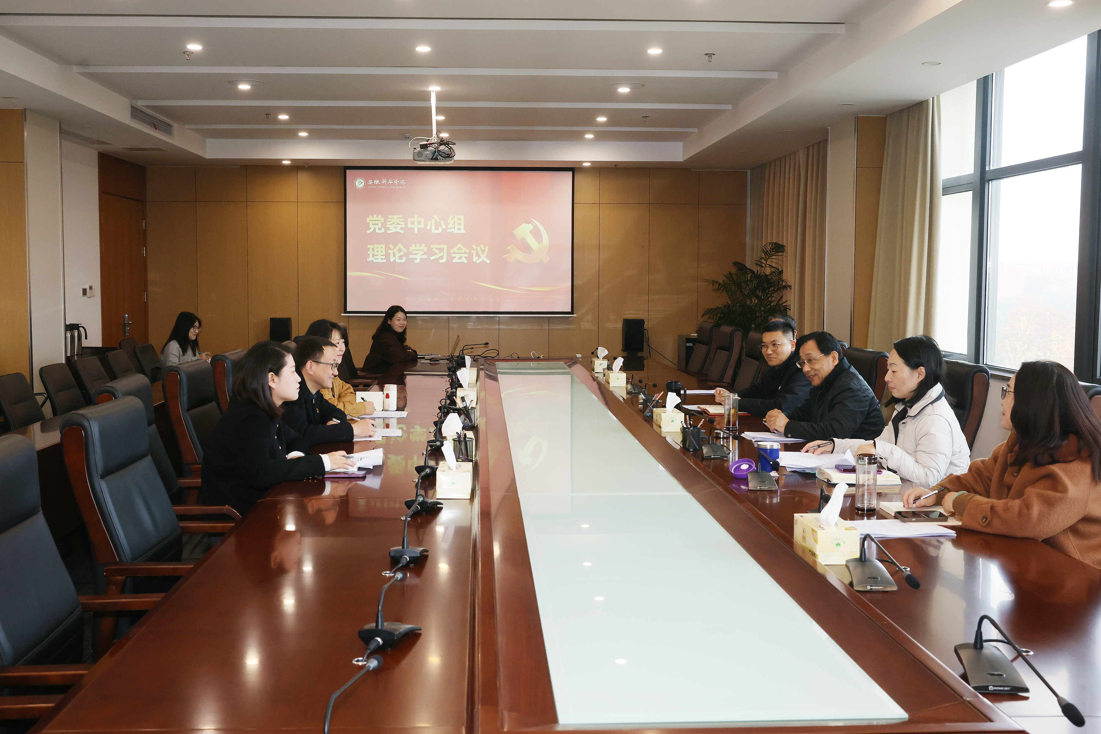 活动分为两个阶段,第一阶段校“两委班子”在科研楼608会议室召开党委理论学习中心组。会上,与会人员集体学习习近平总书记在听取安徽省委和省政府工作汇报时、在中共中央政治局第十七次集体学习时和在省部级主要领导干部学习贯彻党的二十届三中全会精神专题研讨班开班式上的重要讲话精神,学习中共中央办公厅印发《关于进一步加强和改进流动党员管理工作的意见》,视频学习了《雄关漫道》(第二集:三十万人共守一个秘密)。