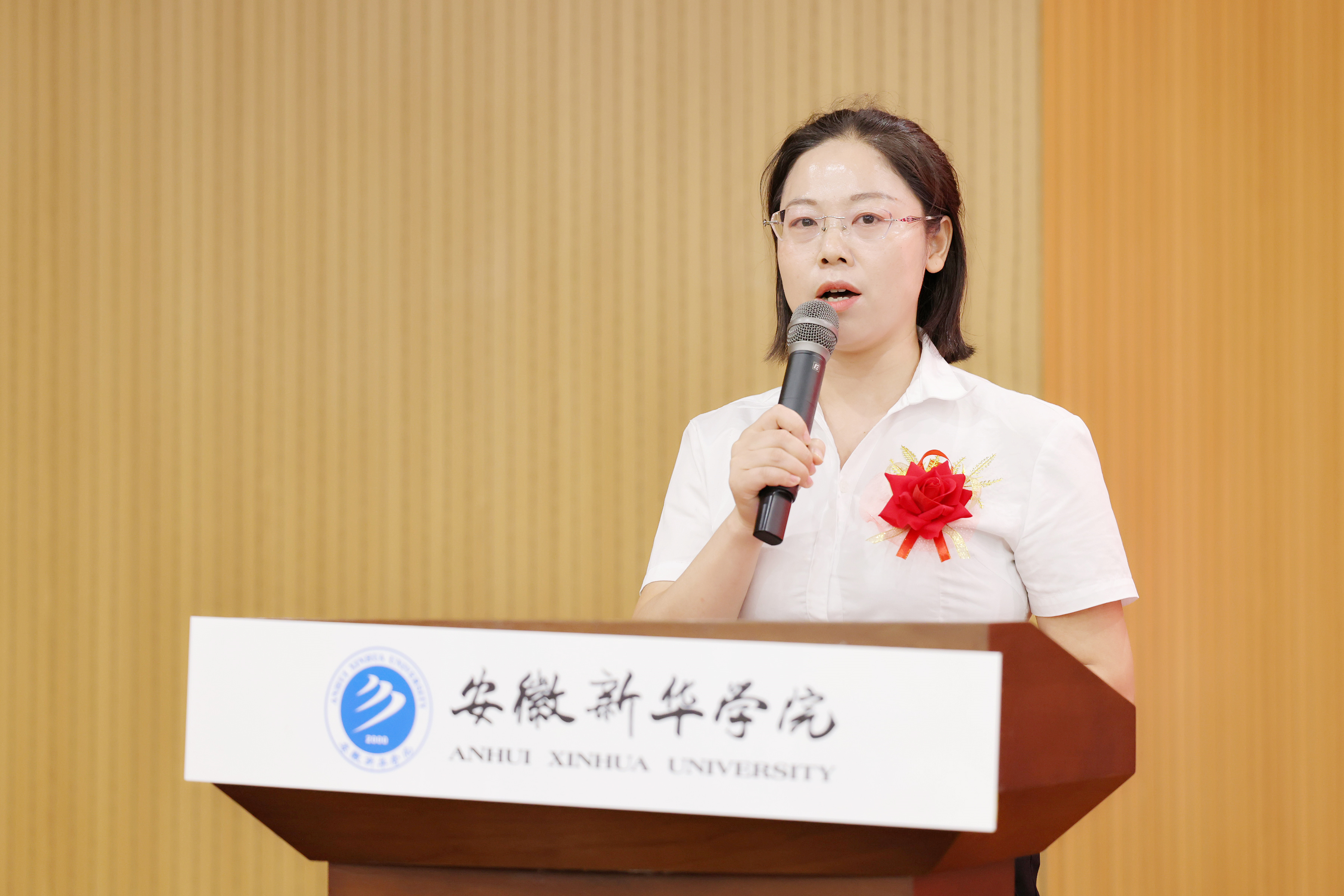 优秀党务工作者代表、通识教育部直属党支部兼职组织员唐江花分享了党务工作的责任与感悟。她表示,党务工作者需以赤诚党心、扎实理论、协调能力和服务意识为支撑,用心服务党员、凝聚组织力量,为党建工作提质增效贡献力量。