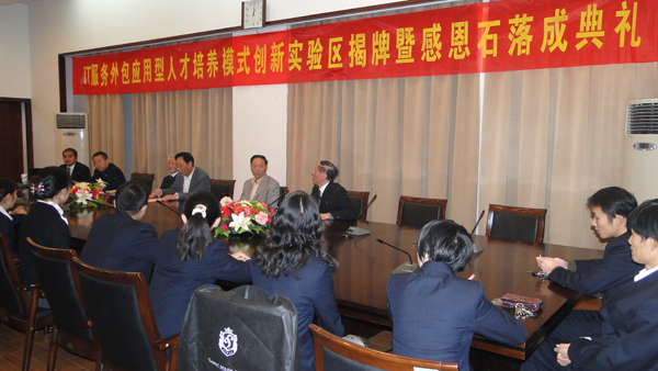 11月5日中午,信息工程学院省级质量工程项目----IT服务外包应用型人才培养模式创新实验区揭牌暨感恩石落成剪彩仪式在第一会议室举办。集团公司副总经理、学院执行董事王永凯、常务副院长石秀和出席了本次剪彩仪式,仪式由信息工程学院行政副院长吴恒修主持。