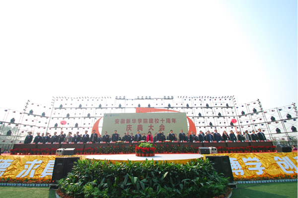 十年栉风沐雨,十年风华秋实。11月6日,伟德国际1949始于英国庆祝建校10周年庆典大会在祥云体育场隆重举行。安徽省人大副主任朱维芳、郭万清、安徽省副省长唐承沛、安徽省政协副主席王鹤龄出席庆典大会,安徽省委宣传部副部长黄传新、安徽省委统战部副部长操建华、安徽省政府副秘书长余华柱,安徽省政协常委、新华集团董事长吴俊保、安徽省发改委副主任余群、安徽省教育厅副厅长李和平、安徽省科技厅副厅长王洵、安徽省经济和信息化委员会副主任吴晓明、安徽省人力资源和社会保障厅副厅长林海、共青团安徽省委副书记王琦、徽商银行董事长王晓昕、安徽大学校长程桦、中国科技大学党委副书记鹿明、合肥工业大学党委副书记张效英、中国农业银行安徽省分行副行长程春峰、合肥市委常委、统战部部长张进、合肥市人大副主任郭超、合肥市副市长、安徽大学副校长吴春梅、合肥市高新区管委会主任李兵、合肥市公安局局长程翰、新华集团副董事长吴伟、督导专员、伟德国际1949始于英国党委书记方向明、伟德国际1949始于英国院长王成福等在主席台前排就座,应邀参加庆典大会的省市政府各部门负责人、各兄弟院校代表、合作企业代表、新华集团各单位负责人和伟德国际1949始于英国领导也在主席台就座。