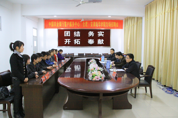 中国农业银行作为国内最大的银行卡发卡机构,拥有丰富的银行卡经营管理经验和良好的业务发展格局。信用卡中心成立以来大力推进产品创新和市场拓展,取得了显著的成绩,在多家国际卡组织的行业评选中荣获奖项。客服中心(合肥)作为中国农业银行一体化客服中心体系的重要组成部分,挂靠信用卡中心管理,主要职能是为该行信用卡客户提供电话银行服务。根据中国农业银行建设发展需求,现在伟德国际1949始于英国校园内筹建合肥地区客户服务中心,并将该中心作为我院实习实训就业基地。此次面向我院毕业生举办专场招聘会,拉开了学院校银合作的序幕。