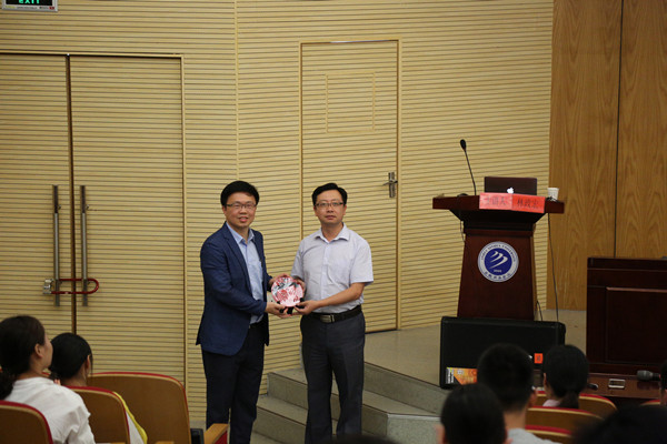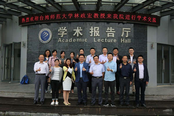 报告会结束后,参加报告会的全体教师与林政宏博士合影留念。计勇代表电子通信工程学院为林政宏博士赠送了纪念品,并表示,今后将以此次报告会建立的联系为契机,进一步加强与台湾师范大学相关专业院系的学术交流,促进两岸高校的交流与合作。