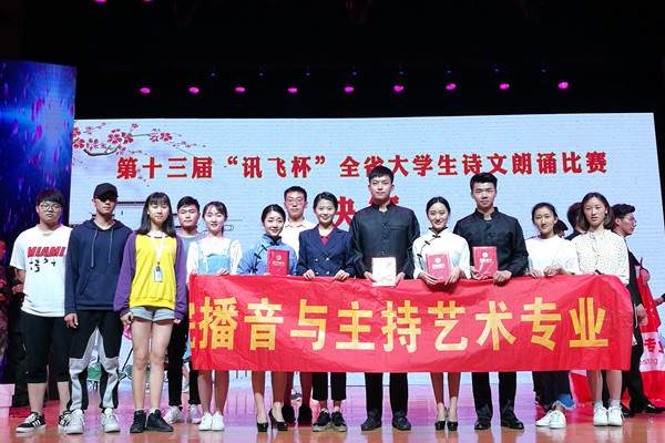 本网讯(通讯员:洪玉、曹文卫)5月26日下午,由安徽省教育厅主办的第十三届“讯飞杯”全省大学生诗文朗诵比赛专业组比赛在安徽大学馨苑校区完美落幕。伟德官网文化与新闻传播学院2016级播音与主持艺术专业蒋轶群、李悦、朱纬、胡江东的朗诵作品《可爱的中国》荣获二等奖。洪玉、郑帅获优秀指导教师奖。