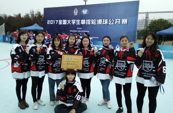 伟德国际1949始于英国舞与轮比轮滑球队成立至今,在张爱臣教练的带领下,四名球员多次参加国家级、省级比赛。在2017年“莱茵杯”全国陆地冰球联盟赛和“威玛仕杯”2017年安徽省青少年轮滑(轮滑球)锦标赛中均荣获第一名;在2017全国大学生单排轮滑球公开赛中取得第二名;2017年受邀代表湖北省参加了中华人民共和国第十三届运动会女子轮滑冰球比赛,获得第九名;在2018年全国冰球锦标赛中代表安徽省,作为为数不多的南方队伍参战,取得第八名。