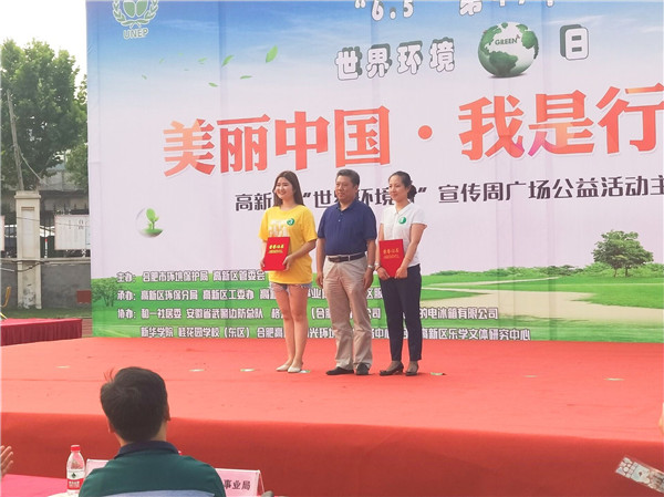 本网讯(通讯员:肖华君)6月5日,合肥市环保局、高新区管委会主办的“美丽中国·我是行动者”世界环境日主题宣传公益广场活动在合肥桂花园学校举行。伟德官网科技学院“暖心”志愿者服务队作为协办方共有30余名志愿者参加了活动。