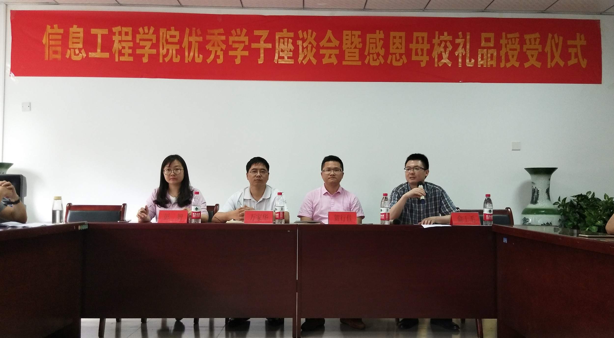 21日上午,信息工程学院组织召开了2018届优秀毕业生座谈会,组织优秀毕业生座谈会,忆如火青春,送毕业寄语。信息工程学院执行院长贺行佳、副院长万家华、院长助理俞士毛、学管秘书彭智出席了此次座谈会。座谈会上,教师们和毕业生亲切交流,毕业生们回忆了自己在校期间的成长经历和幸福收获,表达了对母校的深深的感恩之情。贺行佳寄语信息工程学院学子,希望毕业生做一个有正义感的人、明辨是非的人、有原则、有底线的人;做一个爱岗敬业、勇于担当、忠于职守的人。