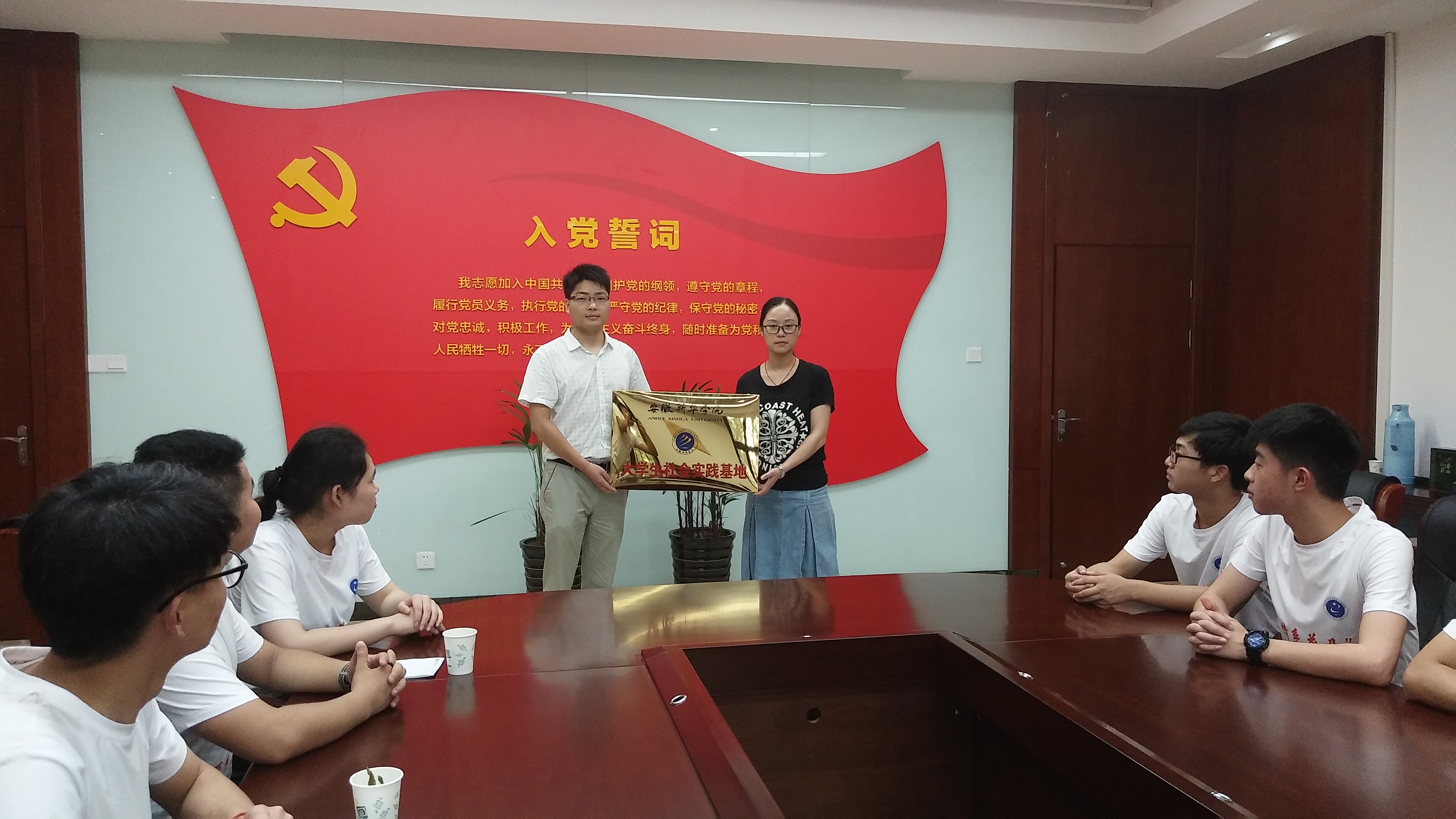下午1时,信息工程学院实践团队前往社区居委会进行对接会议。会上,油墩社区活动负责主任李霞进行“三下乡”任务讨论和对接,双方主要交流了社区暑期小课堂的实施和安排等问题。经过讨论达成共识,双方责任人着重强调了“三下乡”的安全问题,要求每个队员在保证出行、住宿、饮食等方面安全的同时,并保证身边队员以及参加本次暑期课堂的小朋友的安全。会议的最后,时佩峰与社区居委会进行了大学生实践基地铜牌交接,并合影留恋。