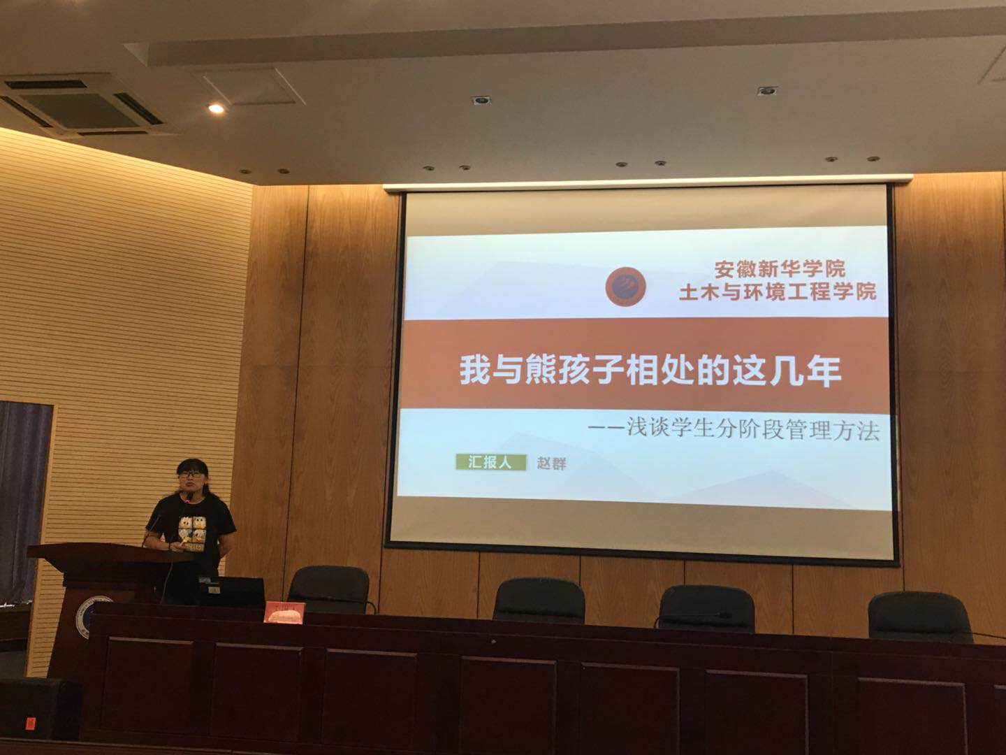 随后,土木与环境工程学院教师赵群作主题为“浅析分阶段学生管理”的工作交流。赵群将大学四年分为“彷徨 呐喊 伤逝 朝花夕拾”四个阶段,她细化梳理了每个阶段的重点工作,用真实生动的案例,风趣幽默的语言详述学生工作的点点滴滴,充分体现了伟德官网辅导员老师们细心暖心的工作态度与严谨务实的工作作风。