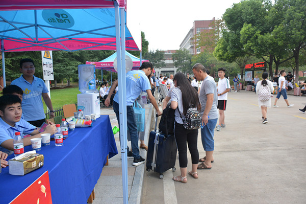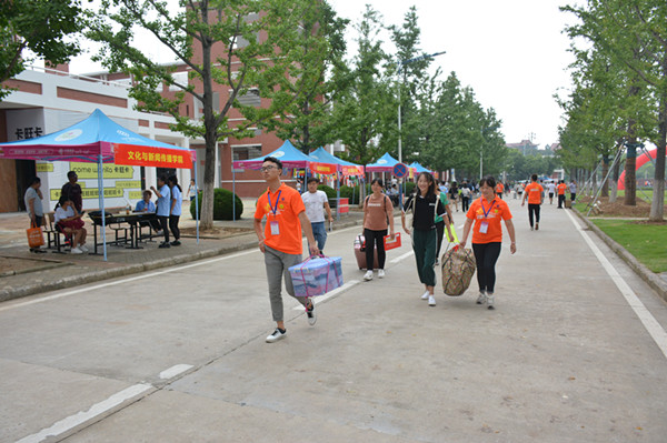 迎新工作如火如荼,随处可见忙碌的身影。随着新同学陆陆续续的到来,志愿者们迅速帮助他们把行李寄存好,有条不紊的引领新生完成报到的所有程序。宿舍的接待也是井然有序的,志愿者负责将每一名到来的新生及家长送到宿舍,安置好之后离开,并会留下志愿者的电话号码,让新生有需要的时候及时联系志愿者。志愿者们给不厌其烦地新生、家长回答着他们提出的各种问题;主动帮忙拎行李等。志愿者们的热情周到的服务很快消除了新生们初来乍到的陌生感。报到过程虽然简单,但其中不乏有语言差异等问题,在志愿者们的细心讲解下,真正做到了:沟通零距离,沟通无差异。有位家长在休息区等待时和志愿者亲切的说道“非常感谢你们志愿者给我们提供的热情周到的服务,让孩子们能够顺利办理入学手续,也希望我们的孩子能像你们一样充满青春正能量,以后也成为温暖的志愿者。”