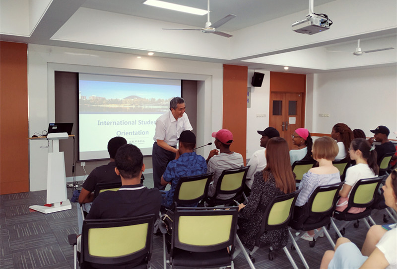 本网讯(通讯员:疏宜菲)9月10日,国际教育学院第一批留学生入学教育培训会在国际教育学院211教室举行,来自俄罗斯、孟加拉以及津巴布韦等共计17名留学生参与本次培训。国际教育学院执行院长徐鸣、国际教育学院院长范东生、国际教育学院副院长赵倩青及国际教育学院、国际交流处全体教职工参与本次培训会。