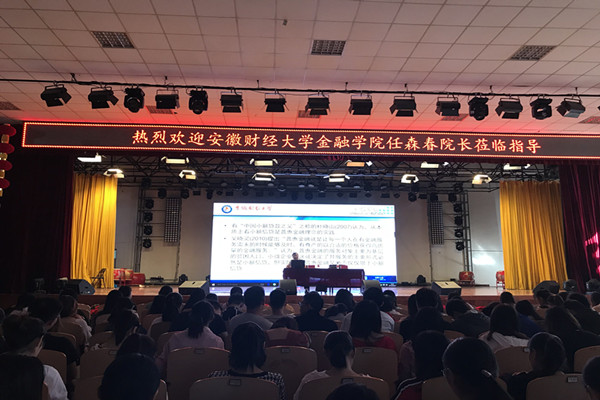 本网讯(通讯员:韩梦雪)为拓宽广大师生的专业视野,加强学术交流与合作,营造良好的科研学术氛围,9月27日上午,财会与金融学院邀请安徽财经大学金融学院院长任森春在学校大礼堂作题为“关于普惠金融的几个问题”的学术讲座。金融系教师和2015级财务管理专业全体学生聆听了讲座。