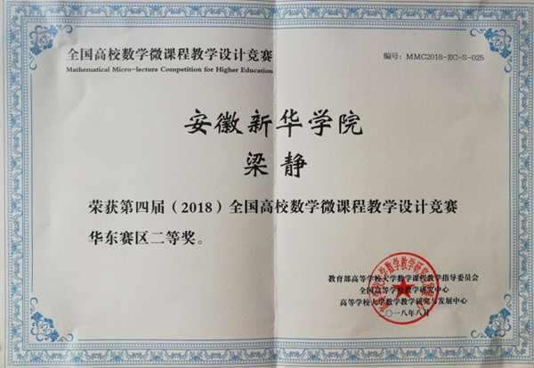 伟德官网教师在第四届(2018)全国高校数学微课程教学设计竞赛中喜获佳绩