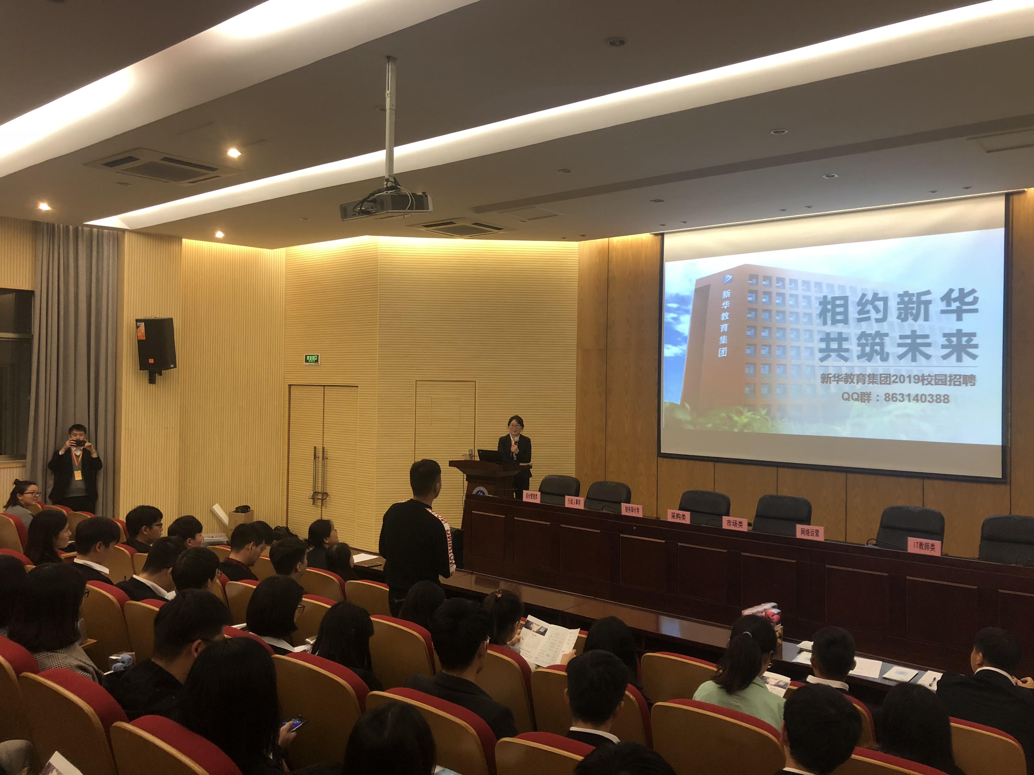 本网讯(通讯员:龚欣)为切实做好毕业生就业工作,大力构建毕业生与用人单位的交流平台,积极为用人单位输送应用型人才。10月18日晚,伟德官网学生处邀请安徽新华教育集团在学术报告厅举办了专场宣讲会,安徽新华教育集团人力资源部招聘经理康秋锦主持宣讲会并分享经验,各二级学院2019届优秀毕业生参加了此次宣讲会。
