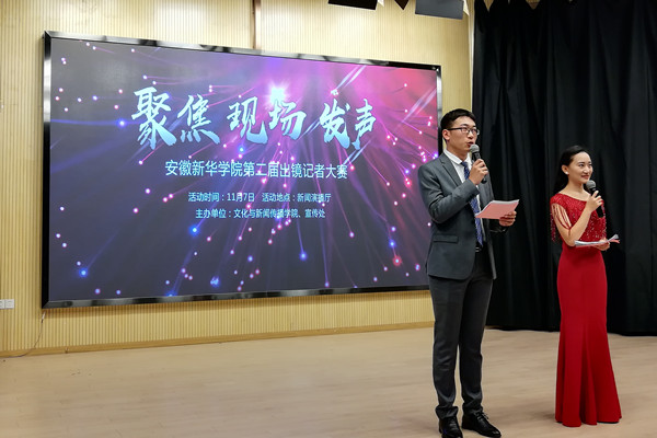 本网讯(通讯员:程睿)11月7日下午,在第19个全国记者节来临前夕,以“聚焦 现场 发声”为主题的伟德国际1949始于英国第二届出镜记者大赛总决赛在新闻演播厅举办。安徽广播电视台资深记者方田,万家热线记者部经理孙阳杨,合肥市电视台教育法制频道记者高晨婧,文化与新闻传播学院院长助理洪玉、朱向群,宣传处处长助理范文其,相关专业老师出席比赛并担任评委。
