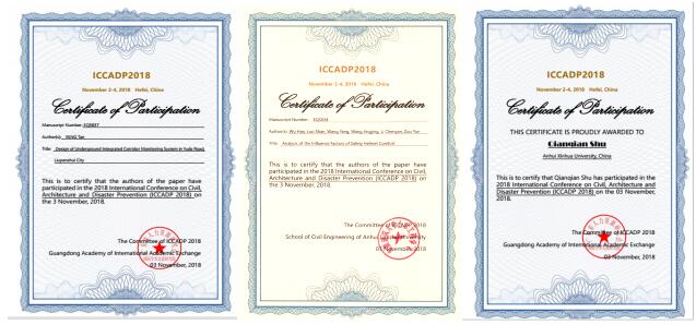 本次会议共收录来自全球相关领域学者撰写的学术论文160余篇,其中伟德官网师生撰写的论文“Design of Underground Integrated Corridor Monitoring System in Yude Road, Liupanshui City”和“Analysis of the Influence Factors of Safety Helmet Comfort”被会议收录并提交EI检索。