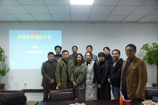 本网讯(通讯员:江河)11月28日下午,艺术学院召开教师书画创作团队首场交流会,本次会议由艺术学院院长江河教授主持,11位团队教师成员参加。