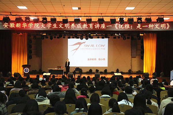本网讯(通讯员:杨雨婷)为了深层次推动伟德官网大学生文明养成教育,引导广大女生自尊、自爱、自立,用优雅传递文明,用文明书写青春,12月5日,校团委在大礼堂举办题为《优雅:是一种文明》的大学生文明养成教育讲座。参加本次讲座的有全校辅导员、各二级学院女生学生骨干、各班级女生代表、校礼仪队以及校大学生艺术团模特礼仪团全体成员。本次讲座由小燕子商务礼仪工作培训室创始人陈小燕主讲。