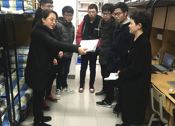 3月8日,李洁和学管秘书杨宏带领全体辅导员老师深入学生宿舍,看望在校学生,了解他们的思想动态和学习生活情况,检查宿舍贵重物品保管情况。在检查过程中,他们对宿舍卫生良好、无安全隐患的宿舍提出表扬,对脏、乱、差及有安全隐患的宿舍给予批评并要求及时整改,并对相关学生进行了思想教育,强化学生的安全防范意识,杜绝宿舍内安全事故的发生。