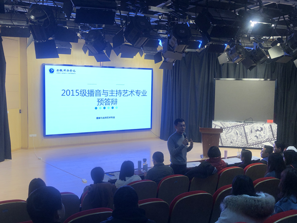 为贯彻《教育部关于狠抓新时代全国高等学校本科教育工作会议精神落实的通知》,迎评促建,艺术表演系开展2015级播音与主持艺术专业毕业设计预答辩暨2016级播音与主持艺术专业毕业设计动员大会,会上展示了2015级优秀毕业设计作品,并就作品创作部分进行了预答辩;与会的领导老师对即将推进的2016级毕业设计工作提出要求和期望,艺术表演系将对本科毕业设计提标准、严要求、立坐标,扎实推进本科教育。