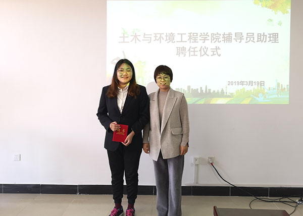 会议开始,魏高莉介绍辅导员助理聘任仪式方案,辅导员助理制度是学生进行自我教育、自我管理和自我服务的重要途径和手段,并进一步明确辅导员助理的职责和选拔考核。接着刘伟宣读聘任文件,关于聘任顾彭等15名学生担任土木与环境工程学院辅导员助理的决定,并由各位辅导员为聘任同学颁发聘书。紧接着学生代表孙维维进行发言,表明担任辅导员助理工作是一个服务学生、锻炼自我的机会,自己学习收获很多,既然选择做辅导员助理就要有责任感,保质保量的完成工作!