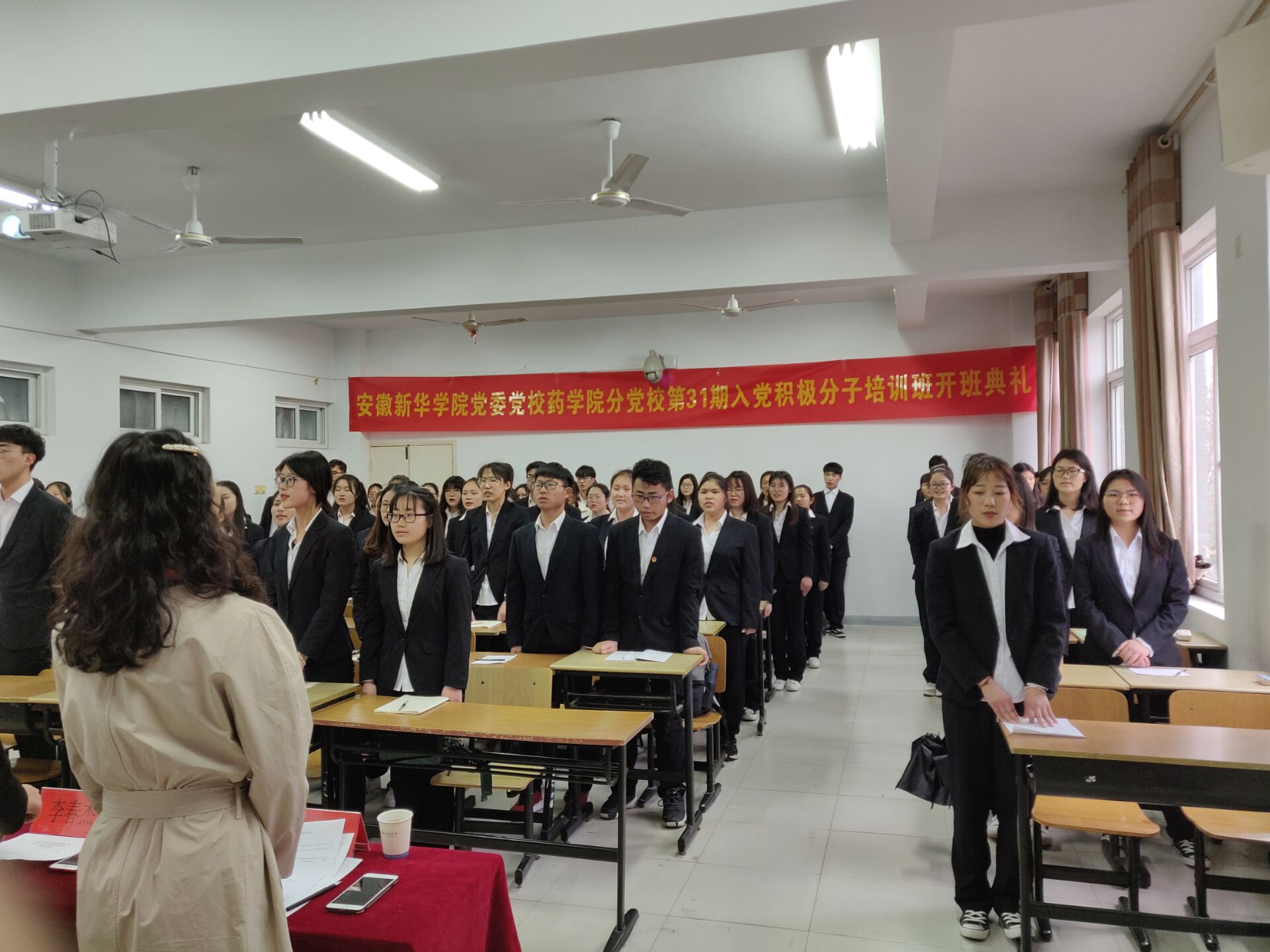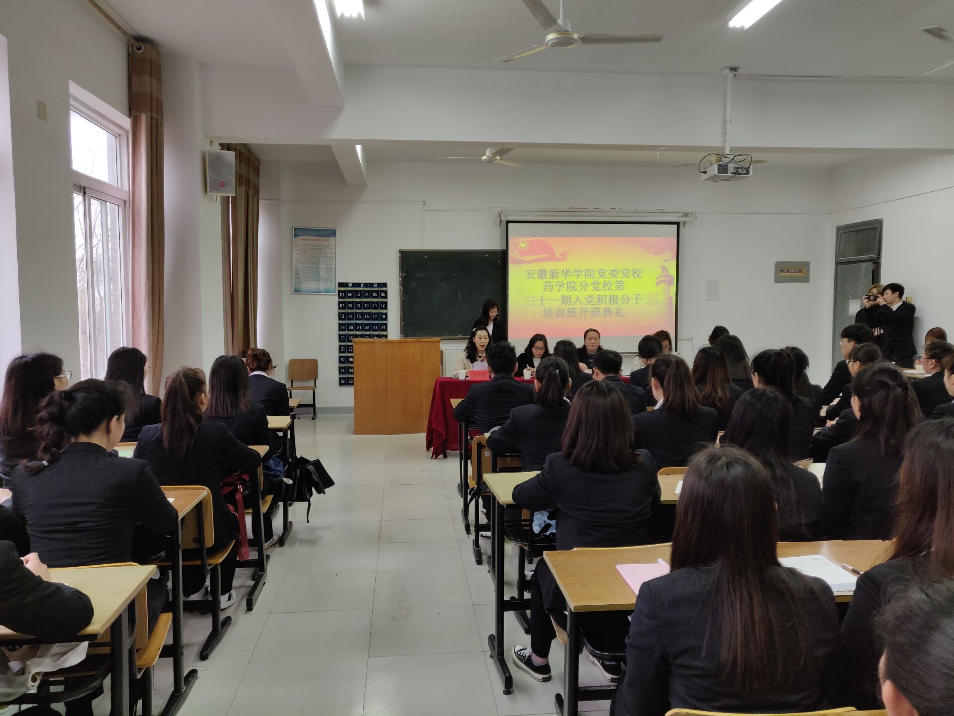 开班典礼在庄严嘹亮的国歌声中拉开了帷幕。会上,赵影同志作动员讲话,她希望大家认真学习,端正入党动机,遵守纪律。徐明月同志宣读培训班纪律要求。2018级学员代表蒋露云同学发言,表达自己积极要求加入党组织的迫切愿望,她表示以后在学习上刻苦钻研、勤奋努力,在工作上积极主动、以身作则,真正发挥模范带头作用。