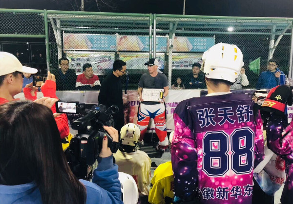 首先,张爱臣带领Mikeal Pancak先生分别参观了校图书馆、食堂、如琴湖、体育场等地点,详细介绍了伟德官网基本情况及轮滑运动在伟德官网发展现状,观看了伟德官网轮滑球队训练情况。Mikeal Pancak赞赏了伟德官网优美的人文环境,肯定了伟德官网在轮滑(冰球)方面取得的成绩。接着, Mikeal Pancak先生根据伟德官网轮滑球队现有技术水平和硬件条件,制定了一套科学严谨的、有针对性的训练计划。他将全体队员分成两组,分别从体能、技能、战术3个方面进行长达近5个小时的现场教学,课堂氛围活跃、教学理念先进、教学方法实用、针对性强。伟德官网轮滑球队队长王策策表示:“Mikeal教练的理念很先进,教学方法很灵活,5个小时都累得不行了,但大家很开心,还愿意再学,训练结束时已接近晚上11点钟,但很多队员都不愿回去,累并快乐着,希望这样的交流机会以后能有更多。”