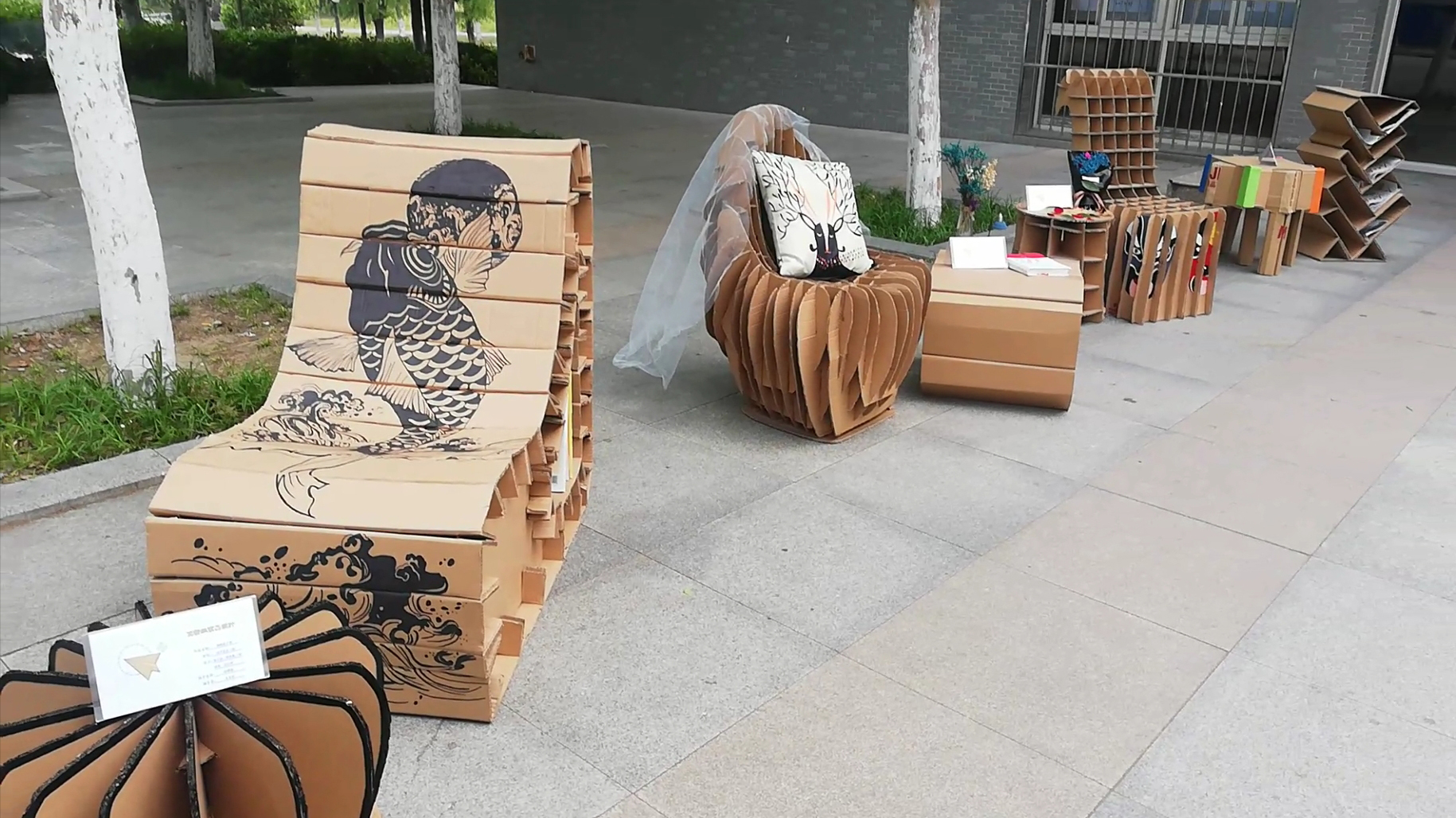 5月16日,艺术学院2016级产品设计1班在艺术学院举办主题为“艺意源生”家具设计展,本次共计展出的家具产品九组,内容丰富,主题鲜明。“锦鲤绕月椅”,鲤鱼戏月的图案在椅面上栩栩如生。“中式茶几座椅组合”很好的提现了中式风格的家具设计,利用瓦楞纸的结构做出雕花设计,使其看上去更加独特亮眼。“简约纸椅”很好的利用了多彩的杂志封面对瓦楞纸家具进行了外包装饰,丰富了该组家具设计的特点。还有画有脸谱纹样的“天鹅椅”,看上去清新亮眼的“童真椅”,像花瓣一样的“环保创意花瓣凳”,造型优美,色彩对比鲜明的“雀椅”,结构复杂的“千机变”,别具一格的“不纸如此”。每一组的作品设计都很好的展现出相同主题不同风格的家具设计。此次作品展是学院实践教学活动中教展结合的尝试,充分表现出了产品设计专业学生认真的学习态度和积极向上的精神面貌,不仅培养学生的思考创造能力,同时锻炼了他们的动手能力,让想法变为现实,为今后产品设计专业的教学工作和专业建设提供了宝贵的经验。