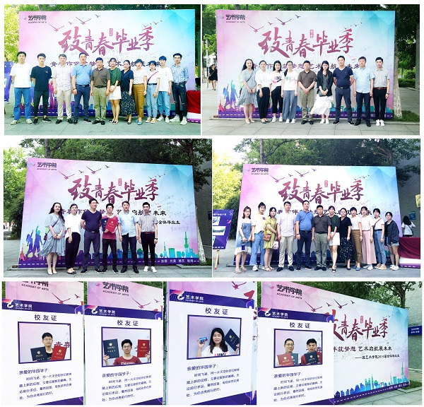 为营造温馨、和谐、感恩母校的良好氛围,艺术学院毕业生党员,考研、专升本、创业等优秀学子与学院领导拍照留念,并为毕业生们拍摄校友证的纪念照片,情系校园,定格这美好的一刻。