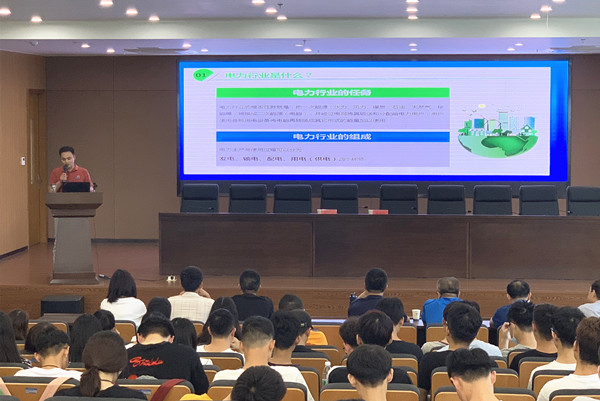 报告分为四个部分。首先,杨秀领带领大家认识了电力生产及使用过程,主要包括发电、输电、配电、用电(供电)环节,并介绍了很多电力公司及电力辅业公司;其次,通过分享多个生动的案例对电力系统做了详细讲解;接着详细介绍了电力行业的现状及发展趋势,并以2017-2018年全国电力供需量为依据,分析得出“电力行业的发展成就能源革命的未来”一结论;最后,通过分析行业前景及人才需求,在专业课程、技术实操、资质考证和社会实践四个方面,针对学生的学习规划和职业生涯规划给出了直接的建议。主题报告结束后,在场学生和杨秀领总经理进行了充分的互动交流。